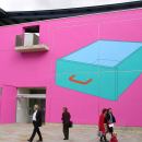 Using Lascaux Studio, Michael Craig Martin designed this outer wall of the Milton Keynes Gallery. The facade painting was a temporary project.